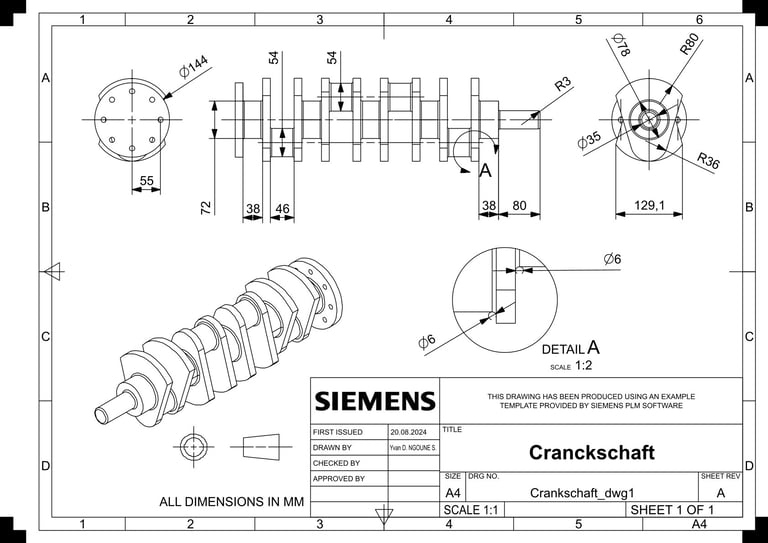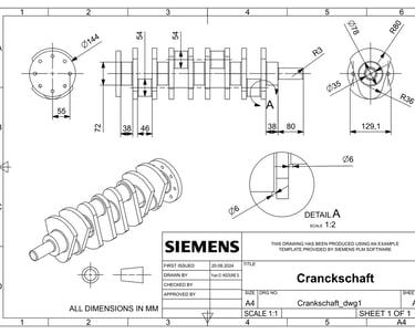 Technische Zeichnung und Bemaßung der Kurbelwelle