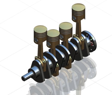 Dieses Projekt bestand in der vollständigen CAD-Konstruktion eines generischen 4-Zylinder-Viertakt-Motors. Ziel war es, alle Kernkomponenten eines Verbrennungsmotors zu modellieren und funktional zusammenzufügen: Kolben mit Pleuelstangen, eine 4-flutige Kurbelwelle, Zylinderkopf mit Ventilen (Ein-/Auslass) und Ventiltrieb (ein Nockenwellenpaar), sowie das Motorgehäuse. Im Unterschied zum V8-Projekt handelt es sich hier um ein etwas einfacheres Aggregat, das jedoch die gleichen konstruktiven Prinzipien beinhaltet. Durch diese Übung wurden die Grundlagen geschaffen, komplexere Motoren aufzubauen.