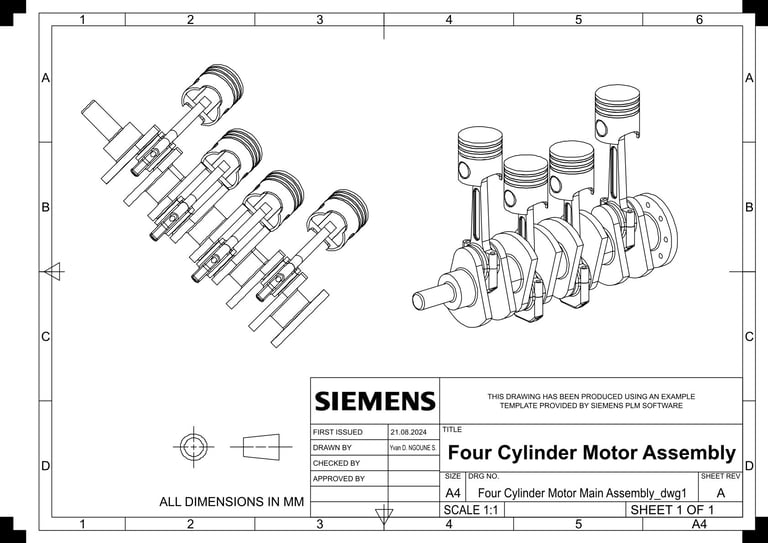 Das Resultat ist ein vollständiges, maßstabsgetreues 3D-Modell eines 4-Zylinders. Es umfasst über 30 Bauteile inklusive Verdichtungsmessschieber, Zündkerzenbohrungen und Lagergarnituren. Besonderheiten waren die präzise Definition von Gelenken für Kolbenhubbewegungen und Ventilöffnungen, sodass eine Kinematik-Animation möglich ist. Durch die erfolgreiche Konstruktion wurde erkennbar, wie sich Designänderungen (etwa Variieren des Hubraums) sofort in der Gesamtbaugruppe auswirken.