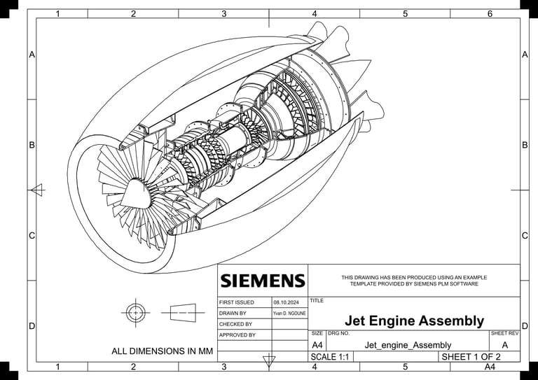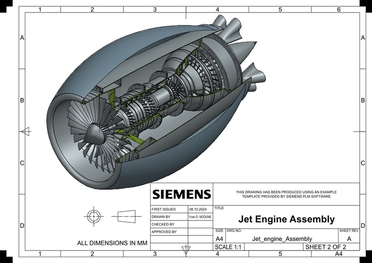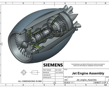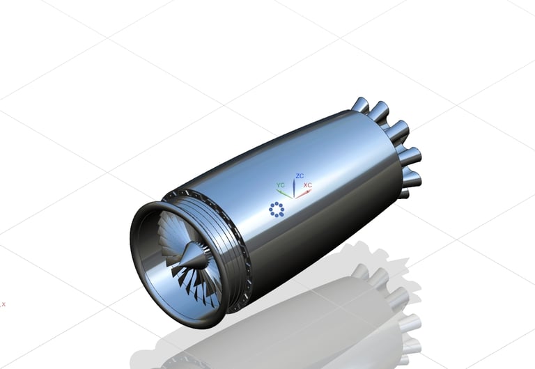Das Ergebnis ist ein vollständiges 3D-Modell eines Triebwerks. Besonderheiten sind die beweglichen Bauteile: Im CAD-Modell können beispielsweise Rotorblätter animiert oder Explosionsansichten erstellt werden. Detailtreue zeigt sich etwa in der Nachbildung des Brennkammergehäuses mit simulierten Drall-Lufteinlässen. Solche komplexen Baugruppen zu konstruieren erfordert eine strukturierte Herangehensweise – etwa den Einsatz einer Top-Down-Methodik und parametrischer Baukästen. Als Ergebnis lassen sich Schnittdarstellungen oder 3D-Renderings des Triebwerkaufbaus erzeugen (siehe Visualisierungsvorschläge).