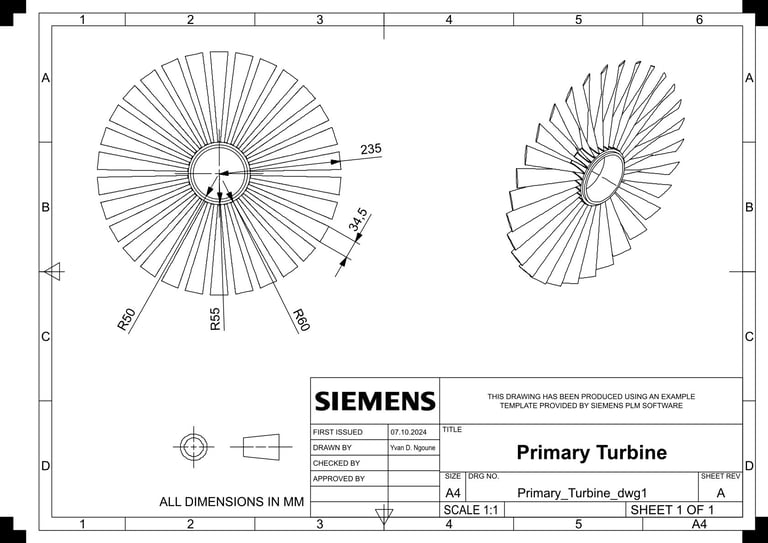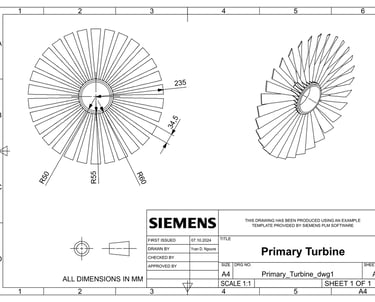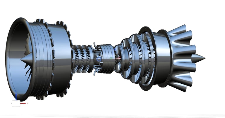 Für dieses Projekt kam professionelle CAD-Software zum Einsatz hierbei Siemens NX. Diese Software unterstützt parametrische Modellierung und Baugruppenmanagement. Typischerweise wurden Feature-basierte Methoden verwendet (Skizzen, Extrusion, Sweep, Rotationskörper). Ein aktuelles CAD-System erleichtert auch die Visualisierung großer Baugruppen mit Performance-Optimierungen (z.B. Top-Down-Design). Da hohe Detailgenauigkeit erforderlich war (z.B. für Turbinenblätter), ist moderne Rechenleistung (schneller Prozessor, viel RAM) hilfreich.