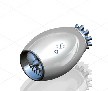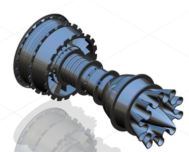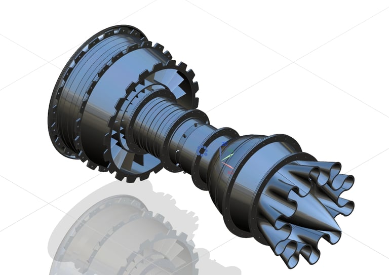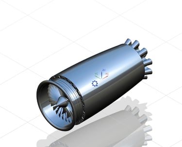 In diesem Projekt wurde ein kompakter Nachbau eines Turbofan-Jettriebwerks in CAD realisiert. Ziel war es, alle wesentlichen Komponenten (Fan, Verdichter, Brennkammer, Turbine, Gehäuse) funktionsfähig als Baugruppe zu modellieren. Dabei sollte ein einfach parametrisierbares Modell entstehen, das z.B. die Geometrie des Ventilators oder des Treibers anpassbar macht. Dies entspricht ähnlichen Ansätzen in der Forschung, wo ein vereinfachtes Turbofan-Triebwerk in einem CAD-System automatisch aufgebaut. Der Fokus lag darauf, ein technisches Verständnis für komplexe Aero-Strukturen zu entwickeln und praktische CAD-Fähigkeiten zu demonstrieren.